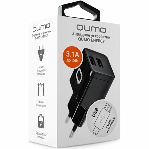 Сетевое зарядное устройство QUMO Energy (Charger 0061), 2 USB, 3.1A, Micro USB cable