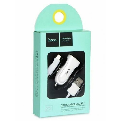 Автомобильное ЗУ HOCO Z2 1хUSB-А, 1.5А + кабель AM-microBM, 1 м, (28/280)