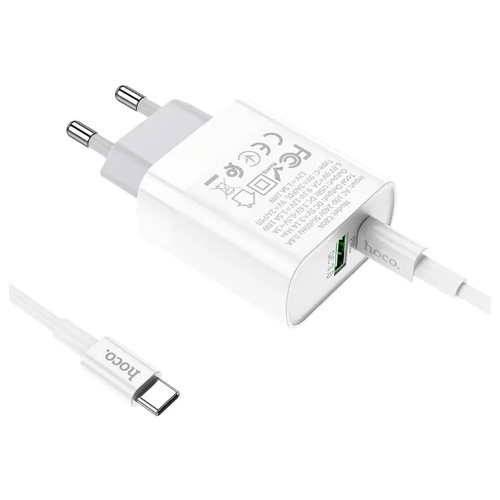 Сетевое зарядное устройство PD20W Hoco C80A Rapido Белое + Кабель USB-C - USB-C