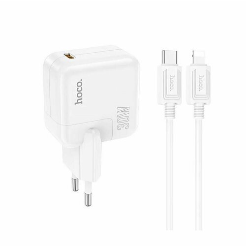 Цены на Сетевое зарядное устройство Hoco C108A Leader, PD35W+QC3.0 + кабель USB Type-C - Lightning, 1м белый в г. Санкт-Петербург