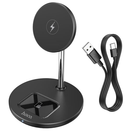 Магнитное беспроводное зарядное устройство Hoco S23 2-in-1, Magnetic charging bracket, 15W, Черный