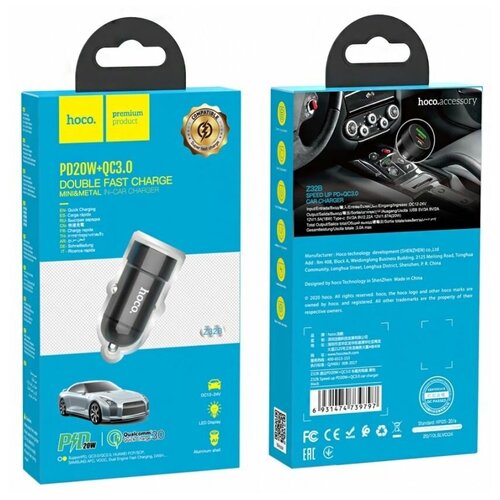 Автомобильное зарядное устройство Hoco Z42 Light road, 20 Вт, серый металлик