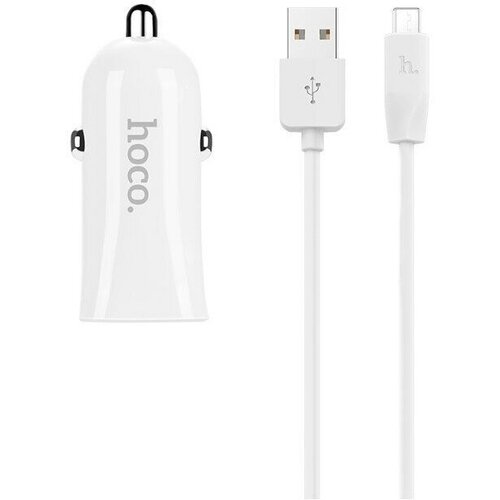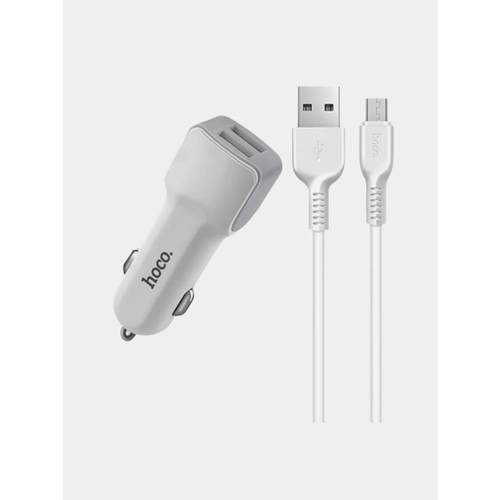 Зарядное устройство а/м 12V -> USB 5V hoco Z12 2xUSB, 2400mA, белое + кабель micro-USB X1
