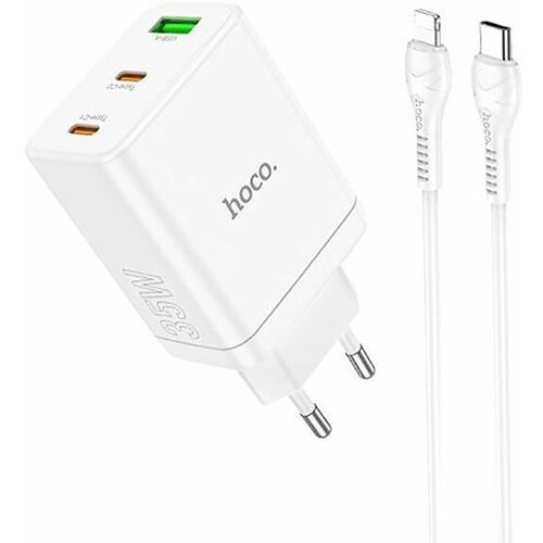 Сетевое зарядное устройство Hoco N33 Start PD35W, с кабелем Type-C - Lightning, белое