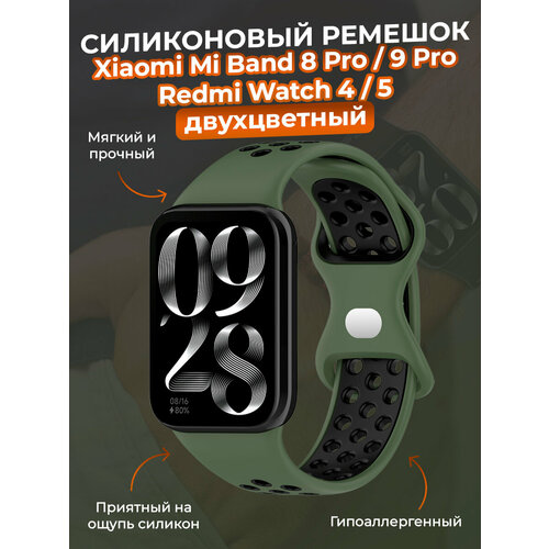 Двухцветный силиконовый ремешок для Xiaomi Mi Band 8 Pro/9 Pro и Redmi Watch 4/5, черно-зеленый