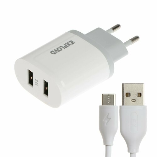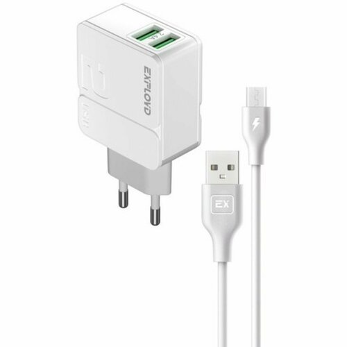 Сетевое зарядное устройство EX-Z-1441, 2 USB, 2.4 А, кабель microUSB, белое