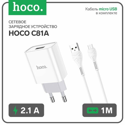Сетевое зарядное устройство C81A, USB, 2.1 А, кабель microUSB 1 м