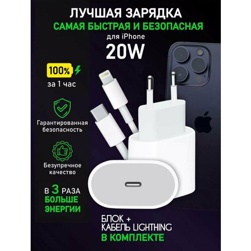 Быстрое сетевое зарядное устройство для iPhone, 20W + провод Lightning Type-C в комплекте / длина кабеля 1М + IP30