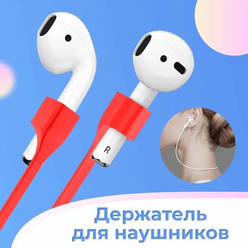 Силиконовый шнур держатель для наушников Apple Airpods 1 и 2 / Магнитное крепление на шнурке для беспроводных наушников Эпл Аирподс 1 и 2 / Красный