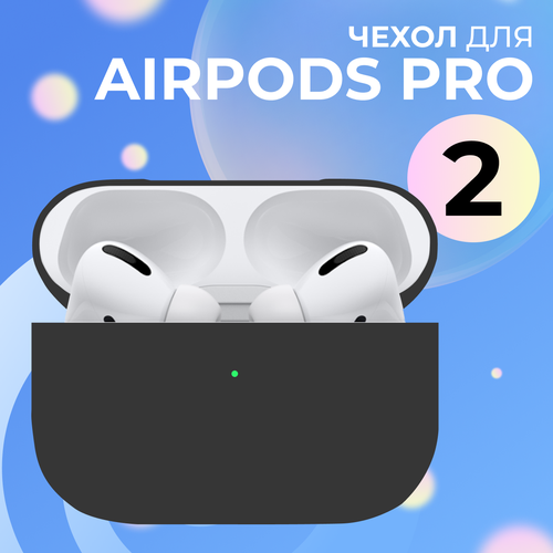 Ультратонкий чехол для Apple AirPods Pro 2 / Силиконовый кейс для беспроводных наушников Эпл Аирподс Про 2 из гибкого силикона, Черный