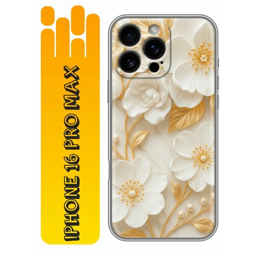Чехол для Iphone 16 Pro Max с принтом женский принт цветы (Айфон 16 Про Макс)