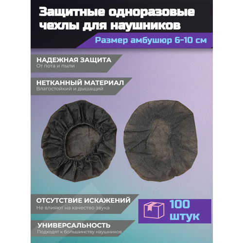 Защитные одноразовые чехлы для наушников 6-10 см, 100 шт, черные