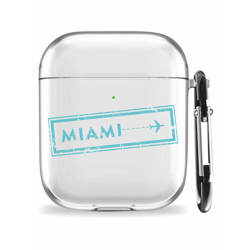Силиконовый чехол Mcover для беспроводных наушников AirPods 1/2, с карабином, глянцевый, Ticket to Miami