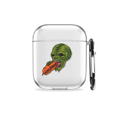 Силиконовый чехол Mcover для беспроводных наушников AirPods 1/2, с карабином, глянцевый, Инопланетянин с хот-догом