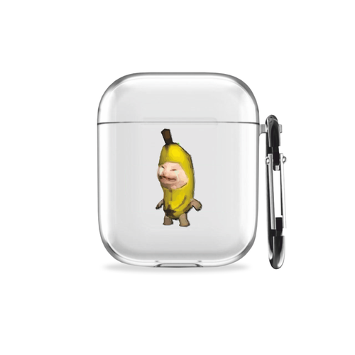 Силиконовый чехол Mcover для беспроводных наушников AirPods 1/2, с карабином, глянцевый, Банана - кот