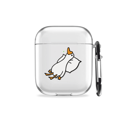 Силиконовый чехол Mcover для беспроводных наушников AirPods 1/2, с карабином, глянцевый, Гусь