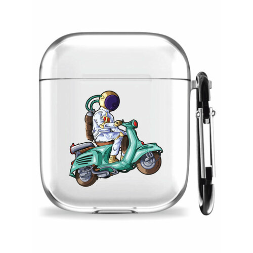 Силиконовый чехол Mcover для беспроводных наушников AirPods 1/2, с карабином, глянцевый, Космонавт на байке