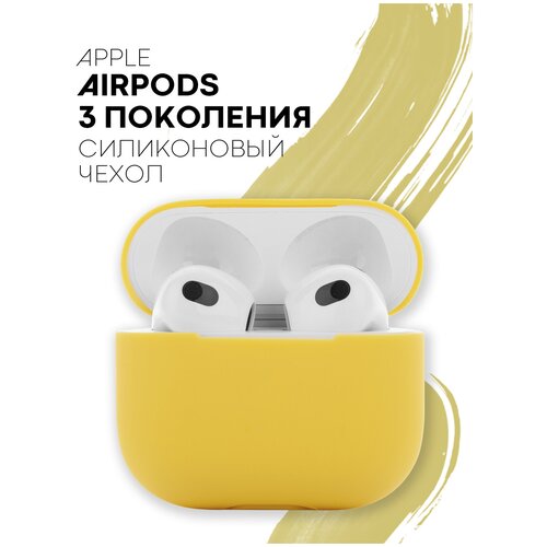 Силиконовый чехол для наушников Apple AirPods 3 (Эпл Аирподс 3-го поколения) с матовым покрытием, индикатор, соответствие всем разъёмам, желтый