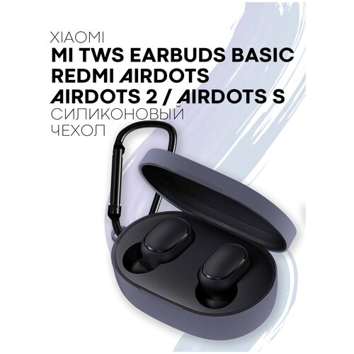 Силиконовый чехол для наушников Xiaomi Redmi AirDots, AirDots 2, AirDots S, Xiaomi Mi True Wireless Earbuds Basic, Earbuds Basic 2, Basic S, серый