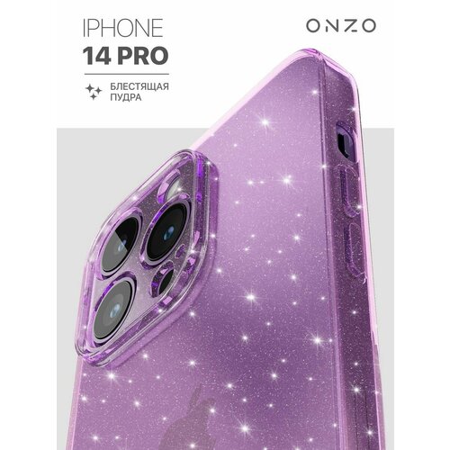 Блестящий чехол на iPhone 14 Pro / Айфон 14 Про, сиреневый прозрачный