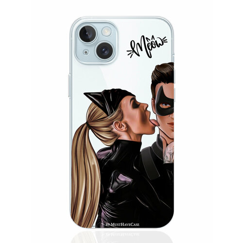 Чехол для смартфона iPhone 15 Plus прозрачный силиконовый Кошечка с парнем