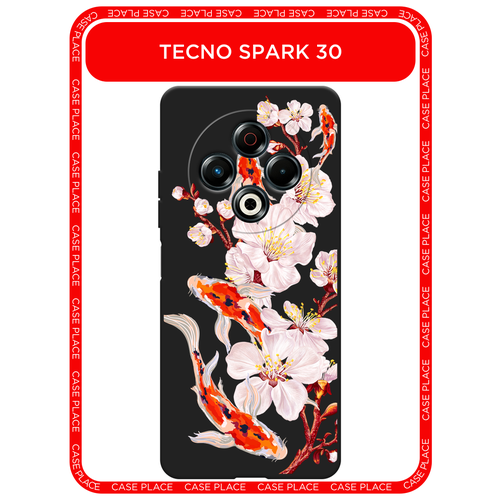 Черный матовый чехол на Tecno Spark 30 / Текно Спарк 30 с принтом Карпы и сакура