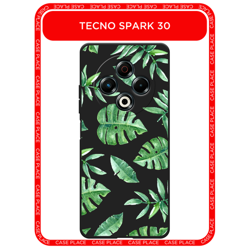 Черный матовый чехол на Tecno Spark 30 / Текно Спарк 30 с принтом Нарисованные пальмовые листья