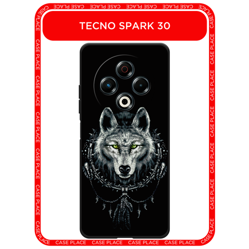Черный матовый чехол на Tecno Spark 30 / Текно Спарк 30 с принтом Волк оберег