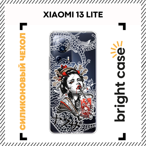 Чехол на Xiaomi 13 Lite / Сяоми 13 Лайт с принтом Гейша с напитком, прозрачный