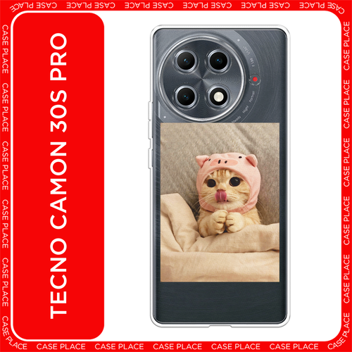 Чехол на Tecno Camon 30S Pro / Текно Камон 30S Про с принтом Котик в розовой шапочке, прозрачный