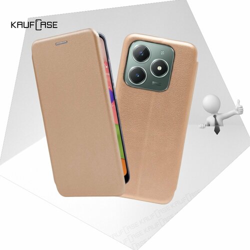 Чехол книжка для телефона Realme C61 (RMX3939)/Realme C63 (6.75"), золото. Текстура под кожу