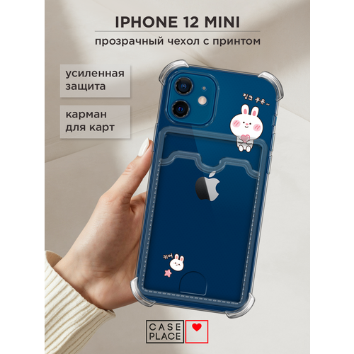 Чехол на Apple iPhone 12 mini (Айфон 12 Мини) с картой и принтом Bunny with heart