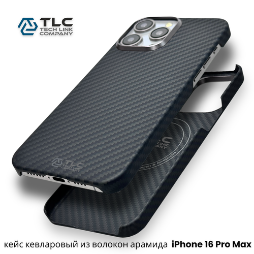 Чехол карбоновый для iPhone 16 Pro Max (MagSafe) Кевларовый из арамидного волокна, ультратонкий, сверхпрочный. Черный