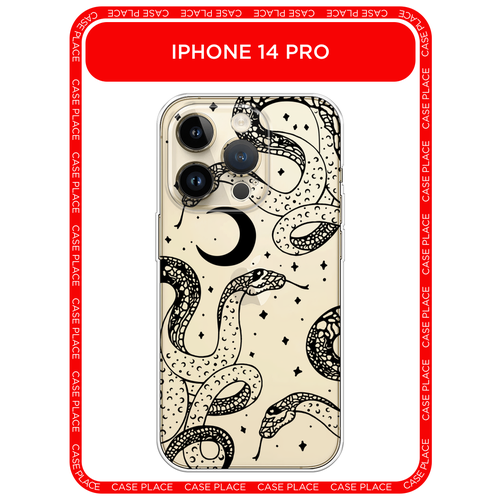 Чехол на Apple iPhone 14 Pro / Айфон 14 Про с принтом Звёздные змеи black, прозрачный