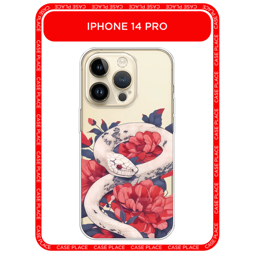 Чехол на Apple iPhone 14 Pro / Айфон 14 Про с принтом Белая змея в цветах, прозрачный