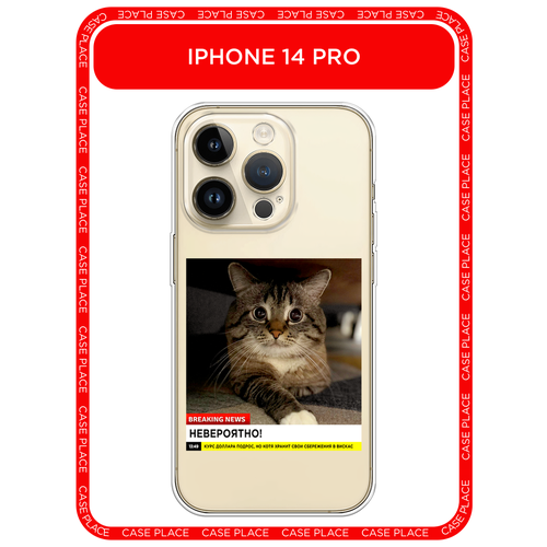 Чехол на Apple iPhone 14 Pro / Айфон 14 Про с принтом Невероятный кот, прозрачный