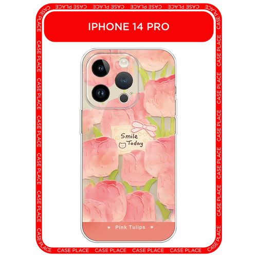 Чехол на Apple iPhone 14 Pro / Айфон 14 Про с принтом Розовые тюльпаны