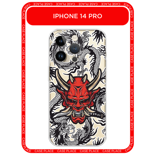 Чехол на Apple iPhone 14 Pro / Айфон 14 Про с принтом Маска и драконы, прозрачный
