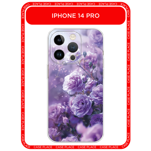 Чехол на Apple iPhone 14 Pro / Айфон 14 Про с принтом Романтичные фиолетовые цветы