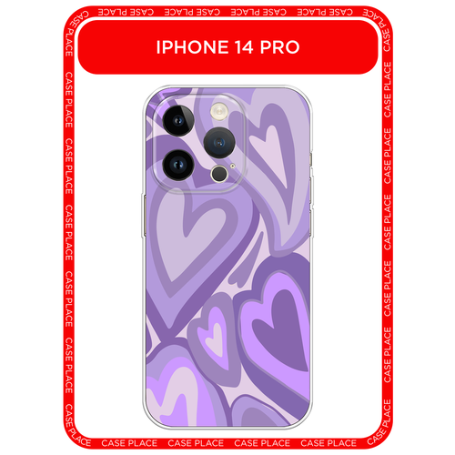 Чехол на Apple iPhone 14 Pro / Айфон 14 Про с принтом Фиолетовые сердца