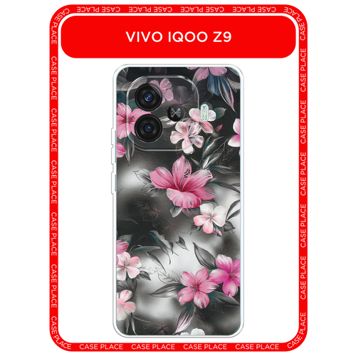 Чехол на Vivo iQOO Z9/Z9 Turbo/Neo 10R / Виво iQOO Z9/Z9 Турбо с принтом Цветы на сером