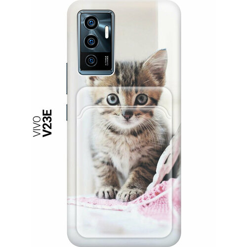 Чехол с карманом для карт на Vivo V23e, Виво В23е с принтом "Милый котенок"