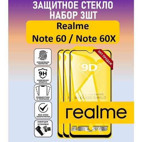 Комплект 3 в 1: Защитное полноэкранное стекло для Realme Note 60 / Realme Note 60x ( 3 шт ) Реалми Нотэ 60 / Нотэ 60 икс Full Glue