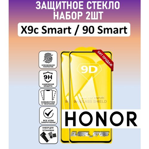 Комплект 2 в 1: Защитное стекло для HONOR X9c Smart / HONOR 90 Smart ( 2 шт ) Хонор икс 9ц смарт / 90 Смарт стекло с рамкой Full Glue