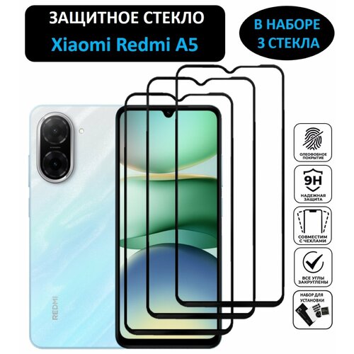 Комплект 3 в 1: Защитное стекло для Xiaomi Redmi A5 ( 3 шт ) Ксяоми Редми А5 Полноэкранное стекло Full Glue