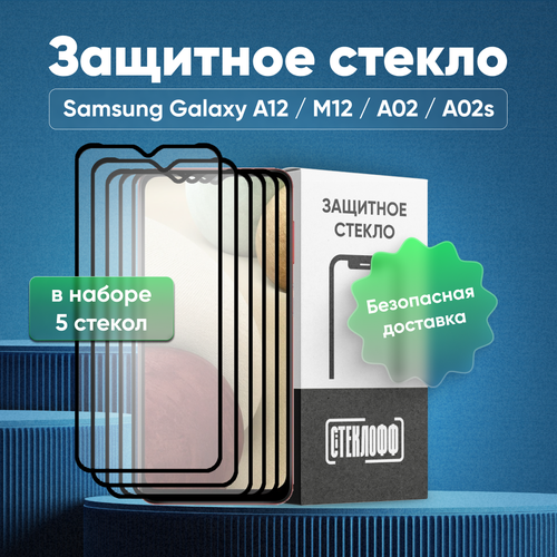 Набор защитных стекол для Samsung Galaxy A12 / M12 / A02 / A02S c полным покрытием, серия Стеклофф Base, 5 шт