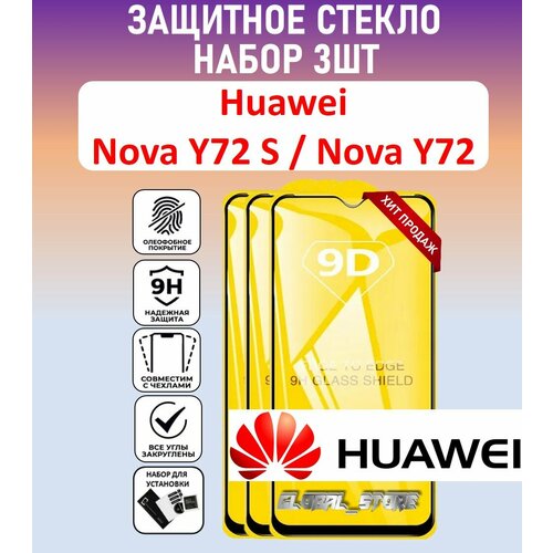 Комплект 3 в 1: Защитное полноэкранное стекло для HUAWEI NOVA Y72 S / NOVA Y72 ( 3 шт ) Хуавей Нова У72с / Хуавей Нова У72 Full Glue