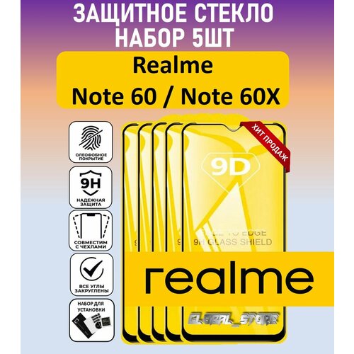 Комплект 5 в 1: Защитное полноэкранное стекло для Realme Note 60 / Realme Note 60x ( 5 шт ) Реалми Нотэ 60 / Нотэ 60 икс Full Glue