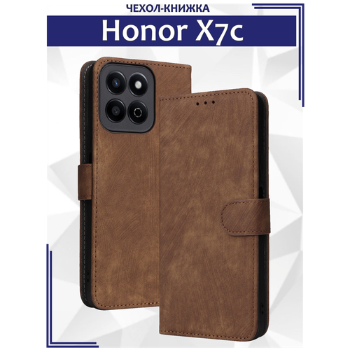Чехол книжка для Honor X7C c магнитной застежкой / Хонор X7C c отделением под карты (коричневая)