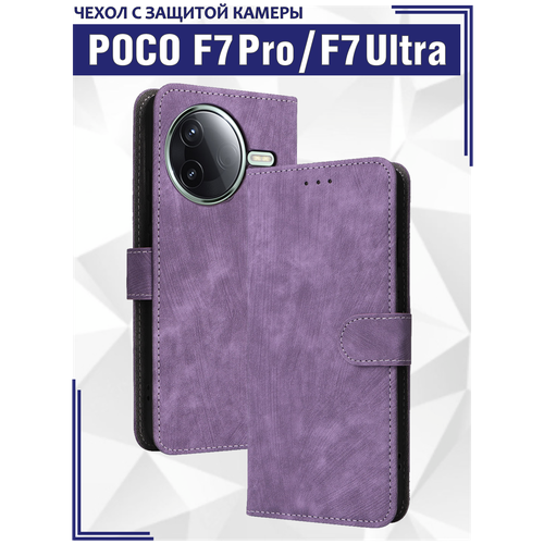 Чехол книжка для Poco F7 Pro/ Poco F7 Ultra c магнитной застежкой / Поко Ф7 Про, Ф7 Ультра c отделением под карты (фиолетовая)